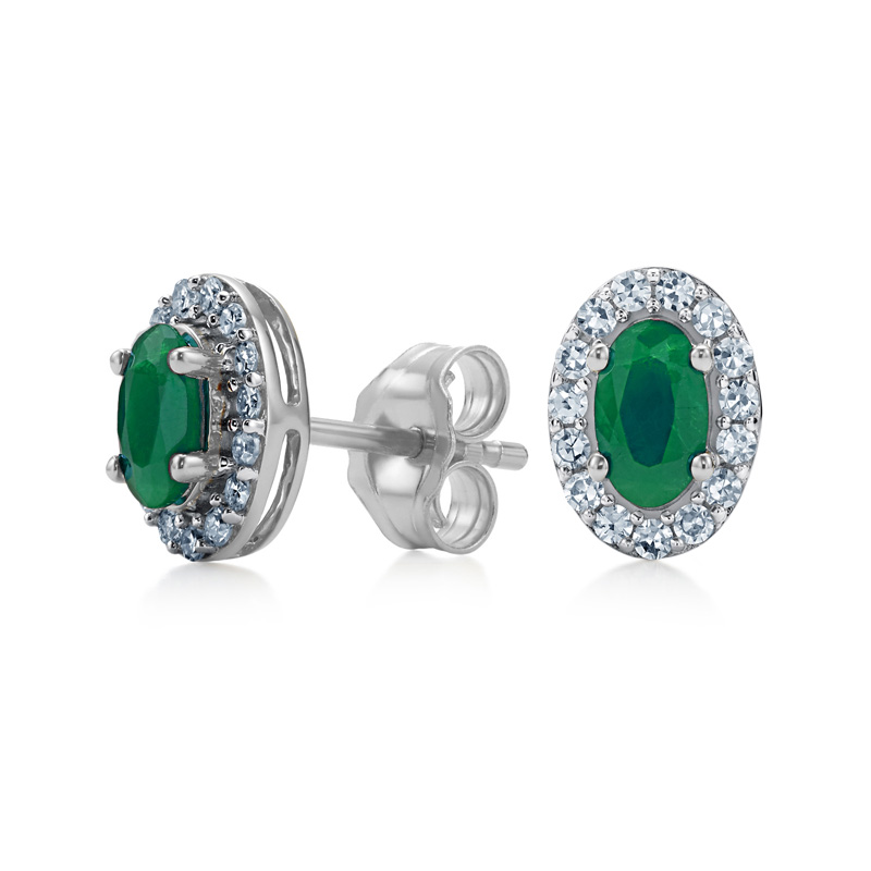 Fehérarany női fülbevaló természetes smaragd és gyémánt kövekkel.