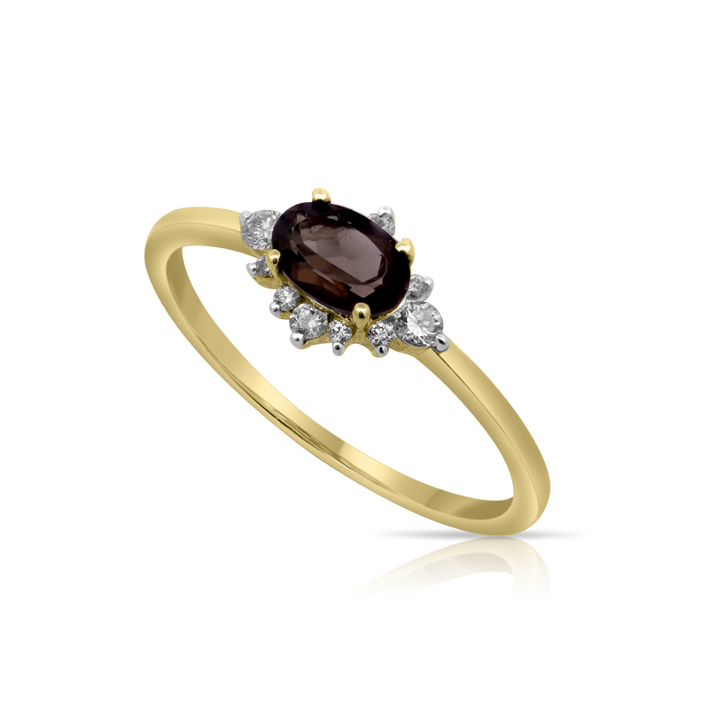 Sárga arany női gyűrű természetes füstkvarc és gyémánt kövekkel.
