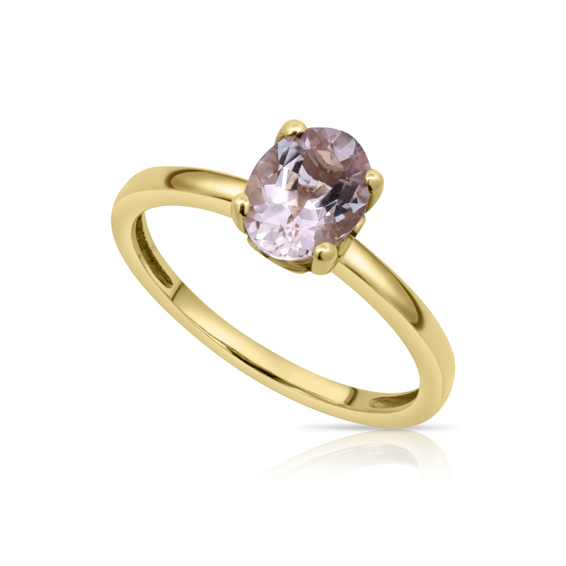 Sárga arany női gyűrű természetes peach morganite kővel.