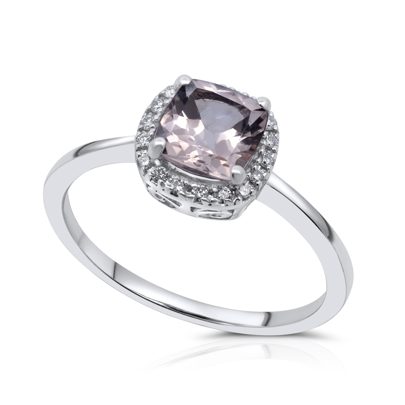 Fehérarany női gyűrű természetes peach morganite és gyémánt kövekkel.
