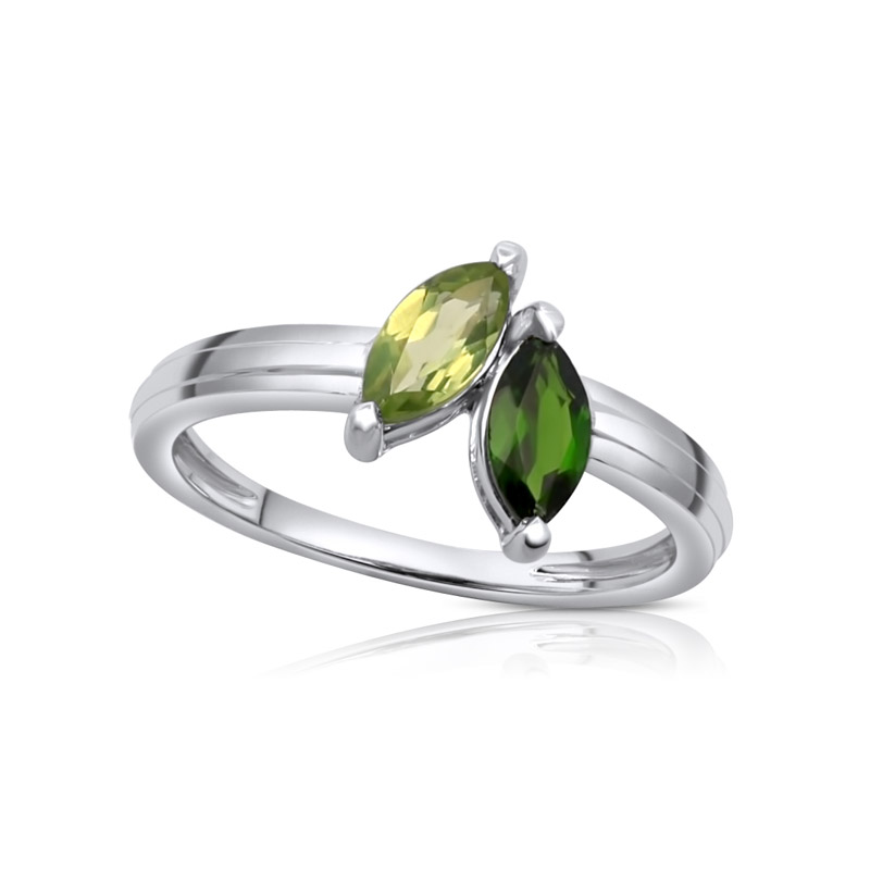 Fehérarany női gyűrű természetes peridot és chrome diopsid kövekkel.