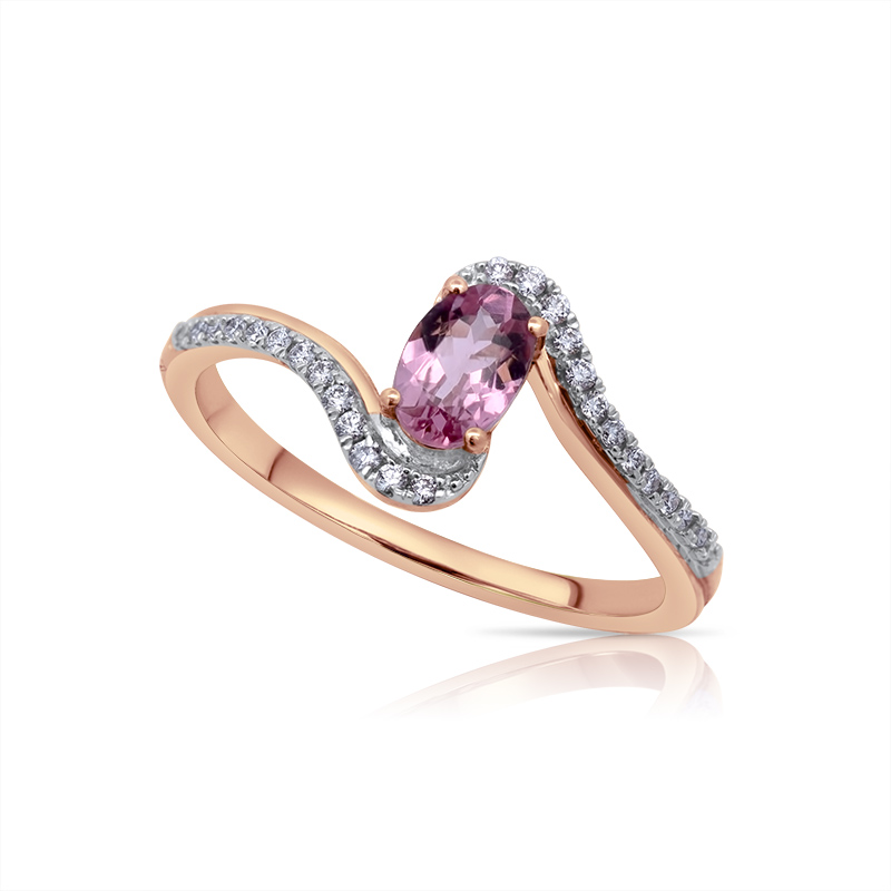 Rosé arany női gyűrű természetes turmalin és gyémánt kövekkel.