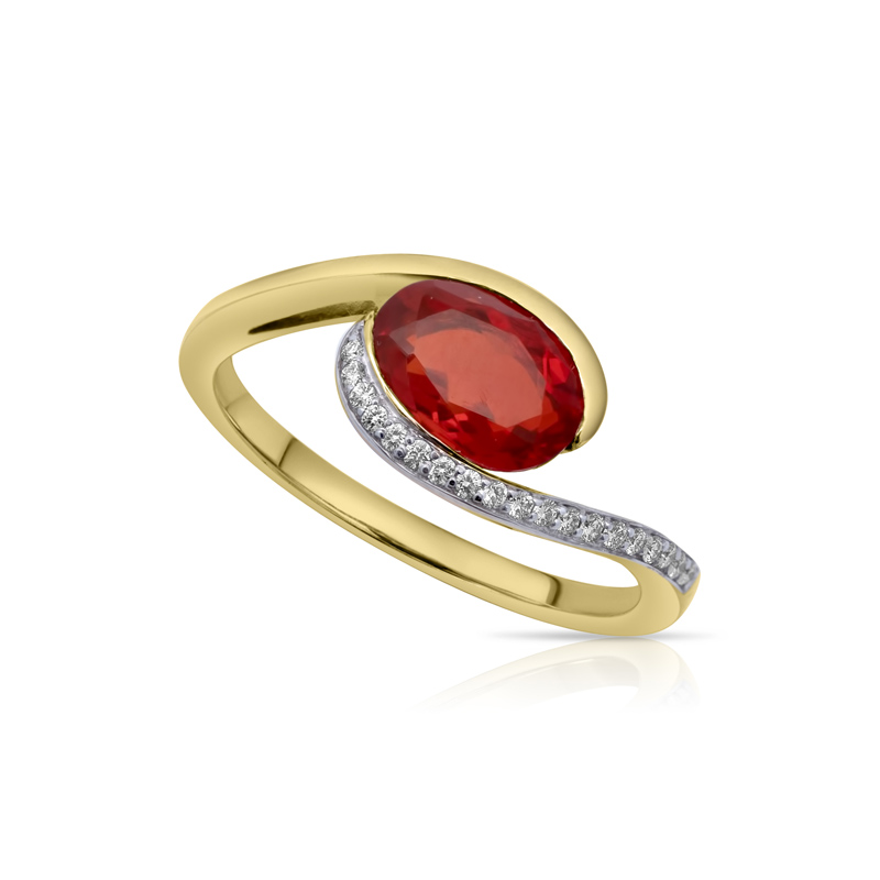 Elegáns, letisztult női aranygyűrű gyémánt kövekkel és benne egy különösen tiszta, és magas minőségű tűzopál kővel, mely Mexikóból származik.
