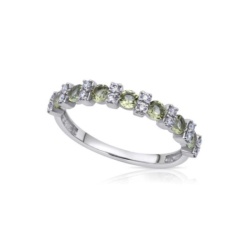 Fehérarany női gyűrű természetes peridot és gyémánt kövekkel.