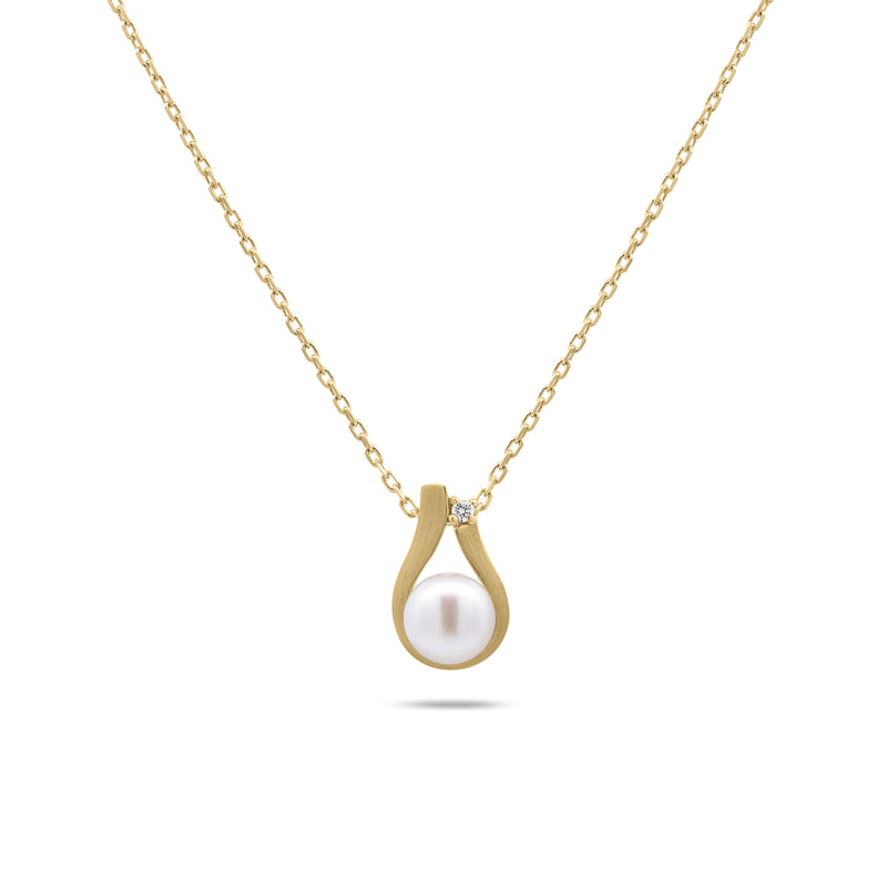 Sárga arany édesvízi gyöngy és gyémánt köves medál