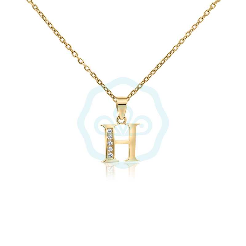 Fehérarany "H" betű medál cirkónia kristály kövekkel. Elérhető sárga színben is. Ha véletlenül elfogyott volna, akkor maximum 1 héten belül rendelkezésre áll.