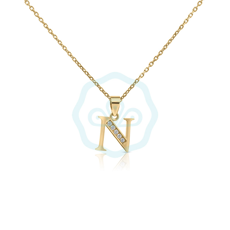 "N" betű fehérarany medál cirkónia kövekkel