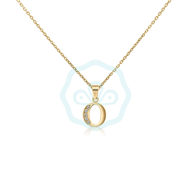 Fehérarany "O" betű medál cirkónia kristály kövekkel. Elérhető sárga színben is. Ha véletlenül elfogyott volna, akkor maximum 1 héten belül rendelkezésre áll.