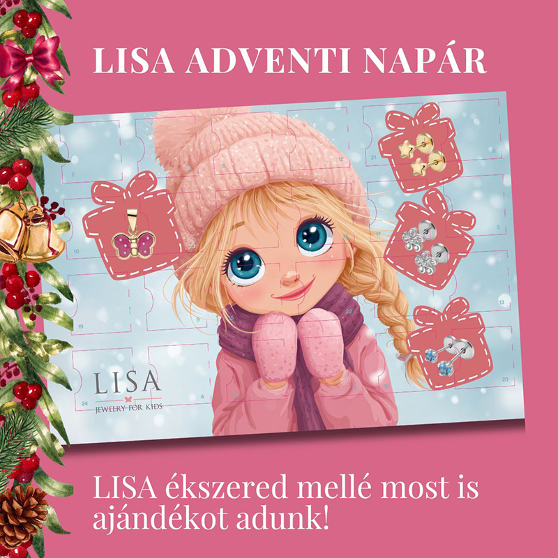 • Lisa Pillangó rózsaszín belsővel arany gyermek fülbevaló