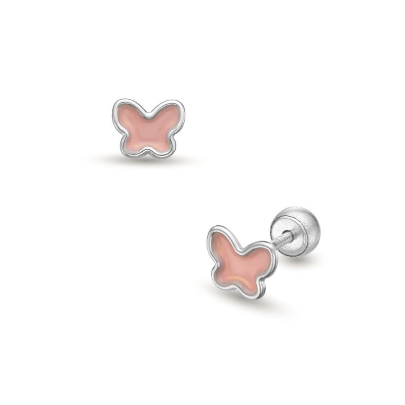 • Lisa Pillangó rózsaszín belsővel fehér arany gyermek fülbevaló