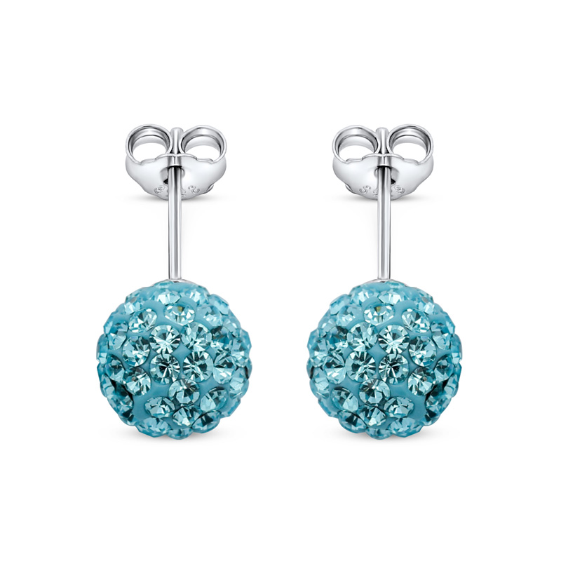 Ezüst gömb alakú fülbevaló csillogó cirkónia kristályokkal.