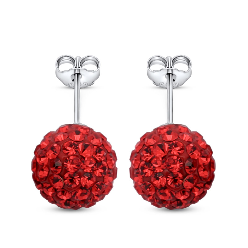 Ezüst gömb alakú fülbevaló csillogó cirkónia kristályokkal.