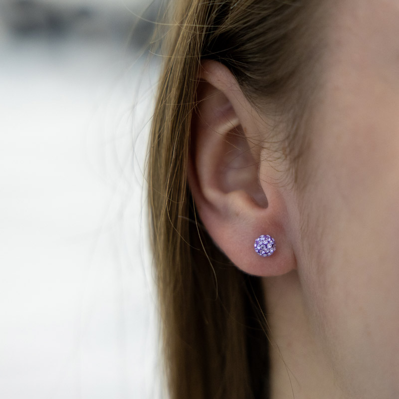 • Világos lila cirkónia köves ezüst fülbevaló 6mm