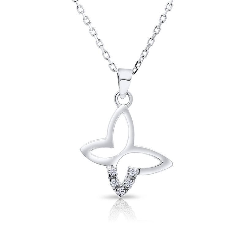 Fehér arany pillangó medál cirkónia kristály kövekkel. Elérhető még sárga színben.