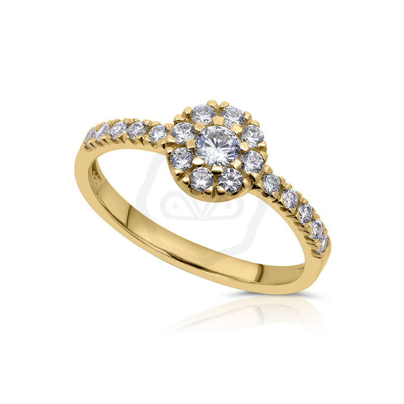 Arany eljegyzési gyűrű cirkónia kristály kővel, melyet erős foglalat tart a helyén. Ha a kiválasztott méretből éppen elfogyott a készletünk, akkor maximum 1 héten belül rendelkezésre áll.