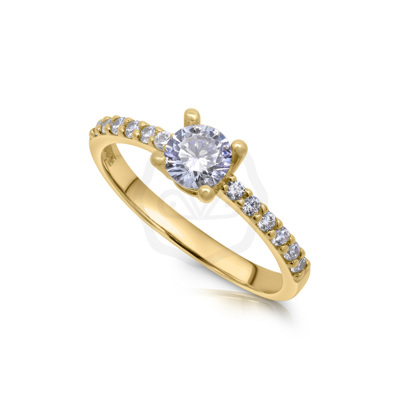 Arany eljegyzési gyűrű cirkónia kristály kővel, melyet erős foglalat tart a helyén. Ha a kiválasztott méretből éppen elfogyott a készletünk, akkor maximum 1 héten belül rendelkezésre áll.