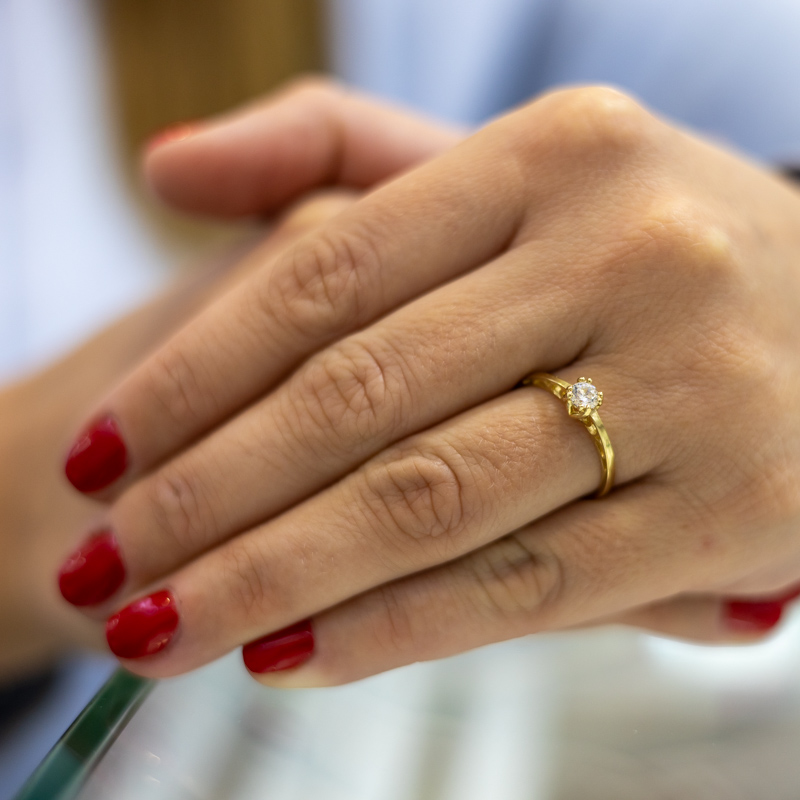Arany eljegyzési gyűrű cirkónia vagy gyémánt kővel
