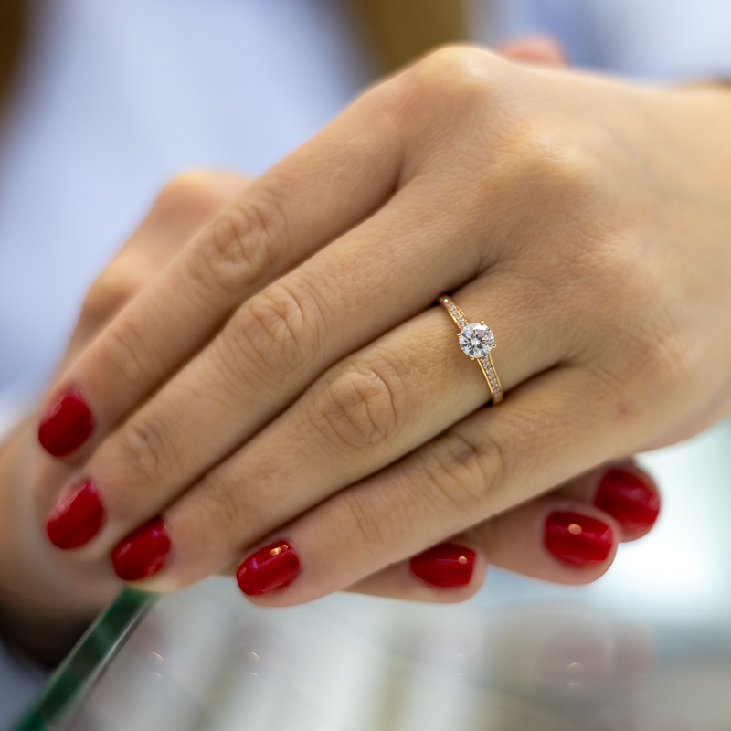 Prémium minőségű eljegyzési gyűrű egyenesen Németországból. A köveket erős foglalat tartja a helyén, így nyugodtan viselhető vízben is.