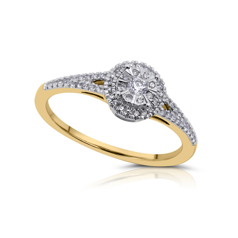 Arany eljegyzési gyűrű gyémánt kövekkel, más néven brill kővel.