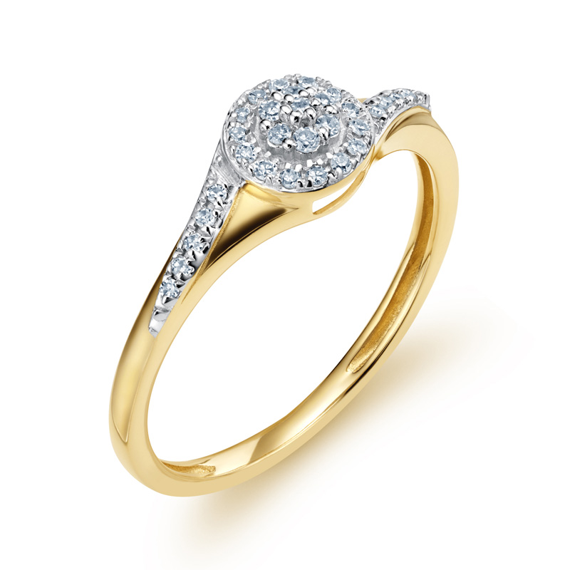 Arany eljegyzési gyűrű gyémánt kövekkel, más néven brill kövekkel.