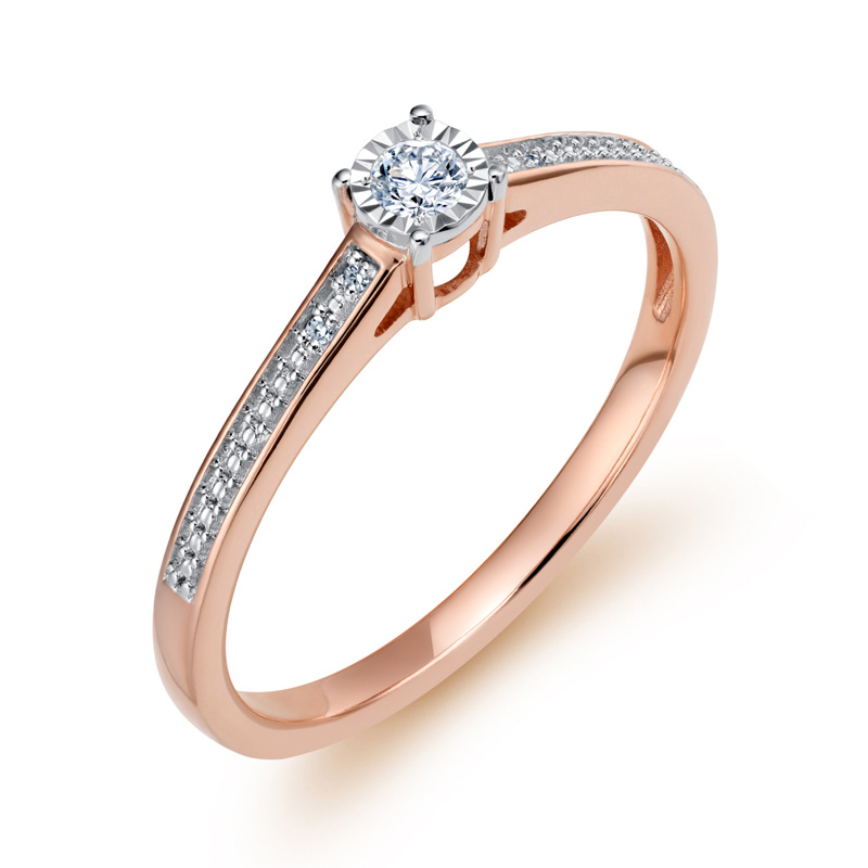 Roséarany eljegyzési gyűrű gyémánt kövekkel, más néven brill kövekkel.