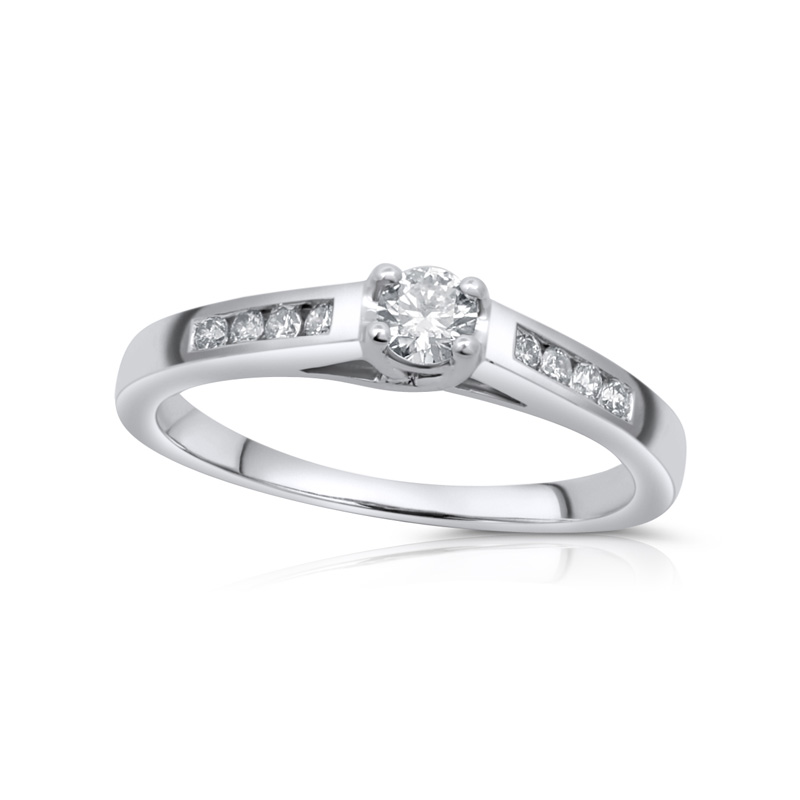 Fehérarany eljegyzési gyűrű gyémánt, más néven brill kövekkel.