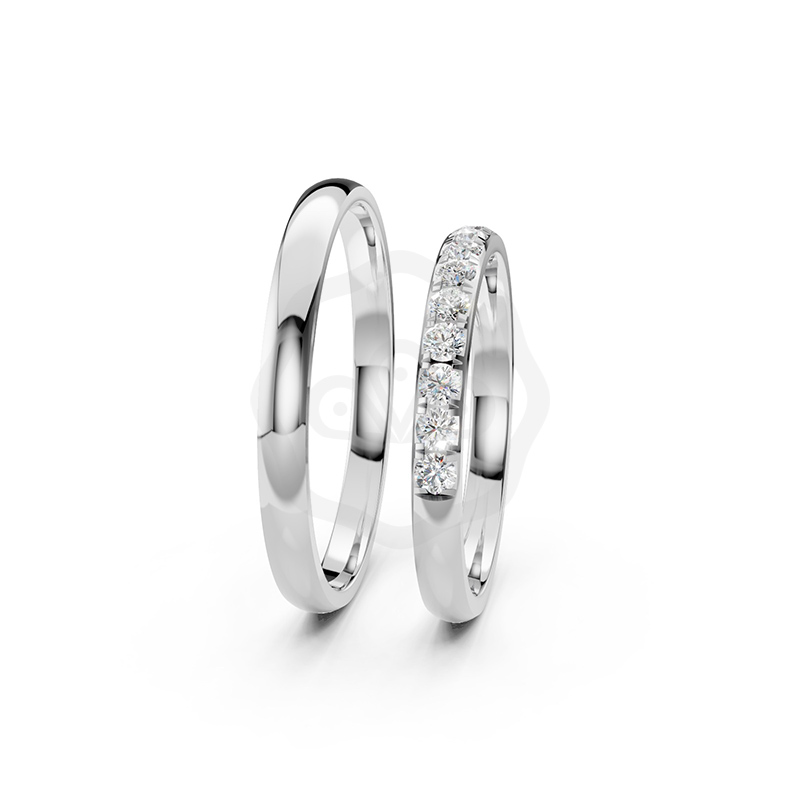 Különleges minőségű karikagyűrűk, domború komfort belsővel, és gyönyörű köves női designnal. Ez a modell minta szerint 15db kővel készül, de szabadon tudjátok változtatni azok számát. A kövek árát a gyűrűk kalkulált anyagárához hozzá kell számolni. A gyűrűkből mintadarab található meg üzletünkben, amit megnézhettek, megpróbálhattok. A karikagyűrűk női változata 48-tól 60-as méretig, sárga és fehér színben általában egy héten belül rendelkezésre áll. Az ezeken kívüli méretek, illetve a rosé arany változat gyártási ideje 3-4 hét.