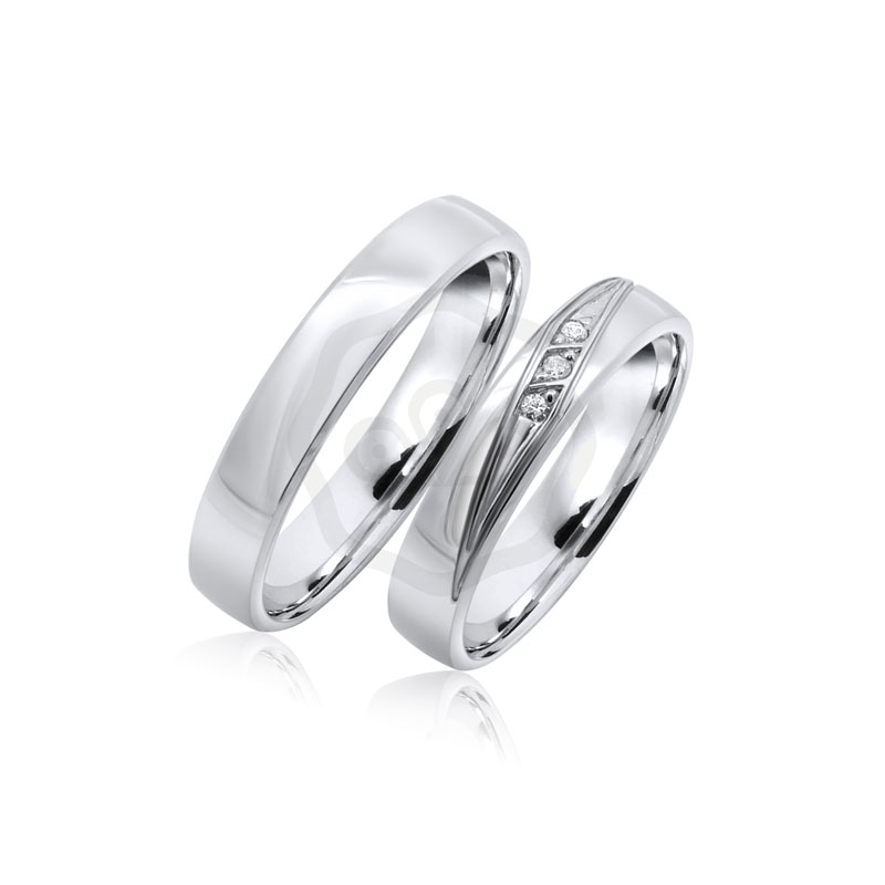 Különleges minőségű karikagyűrűk, domború komfort belsővel. A női modellt 3 kő díszíti, amit kérhettek cirkónia vagy gyémánt opcióval illetve kő nélkül is. A kövek árát a gyűrű kalkulált anyagárához hozzá kell számolni. A gyűrűkből női és férfi mintadarab található meg üzletünkben, amit megnézhettek, megpróbálhattok. A gyártási idő átlagosan 3-4 hét.