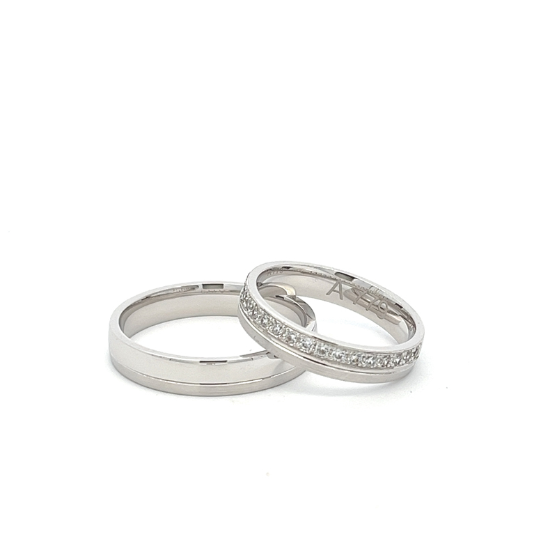 Különleges minőségű karikagyűrűk, domború komfort belsővel. A női modellt 17 kő díszíti, amit kérhettek cirkónia vagy gyémánt opcióval illetve kő nélkül is. A kövek árát a gyűrű kalkulált anyagárához hozzá kell számolni. A gyűrűkből női és férfi mintadarab található meg üzletünkben, amit megnézhettek, megpróbálhattok. A gyártási idő átlagosan 3-4 hét.