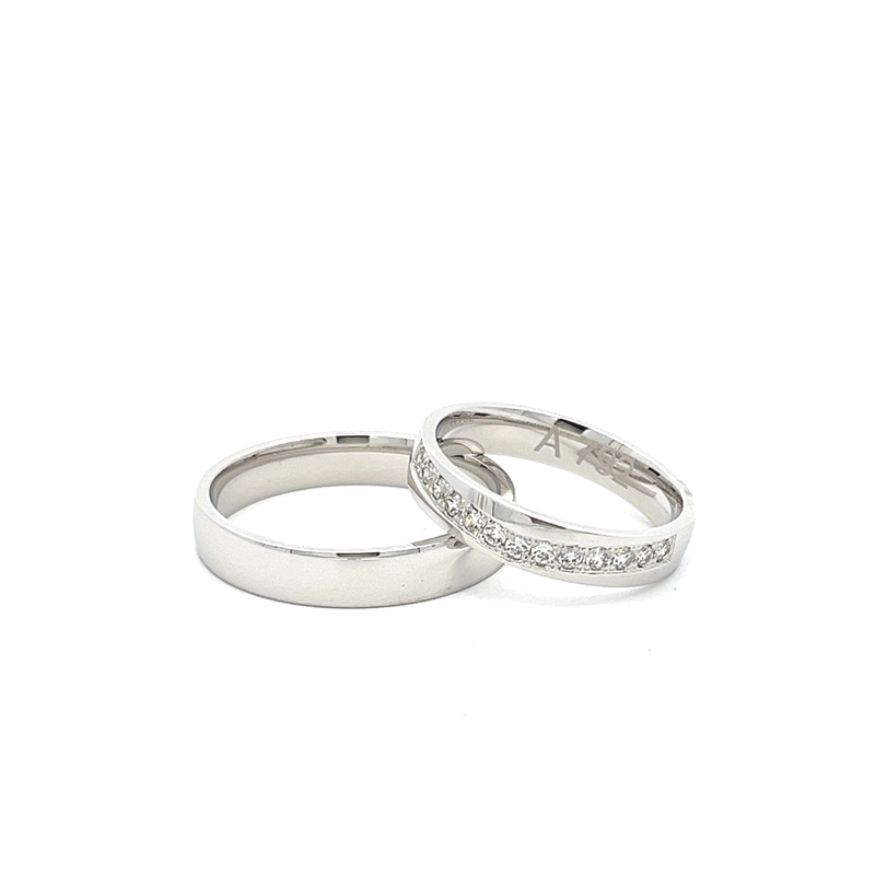 Különleges minőségű karikagyűrűk, domború komfort belsővel. A női modellt 13 kő díszíti, amit kérhettek cirkónia vagy gyémánt opcióval illetve kő nélkül is. A kövek árát a gyűrű kalkulált anyagárához hozzá kell számolni. A gyűrűkből női és férfi mintadarab található meg üzletünkben, amit megnézhettek, megpróbálhattok. A gyártási idő átlagosan 3-4 hét.