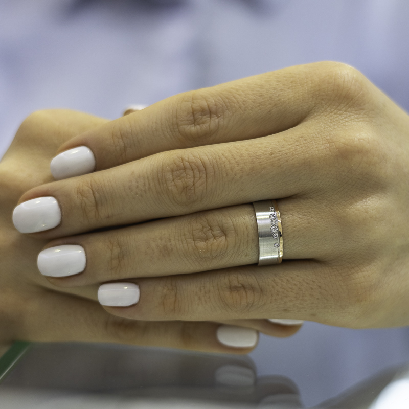 Különleges minőségű karikagyűrűk, domború komfort belsővel. A női modellt 6 kő díszíti, amit kérhettek cirkónia vagy gyémánt opcióval illetve kő nélkül is. A kövek árát a gyűrű kalkulált anyagárához hozzá kell számolni. A gyűrűkből női és férfi mintadarab található meg üzletünkben, amit megnézhettek, megpróbálhattok. A gyártási idő átlagosan 3-4 hét.