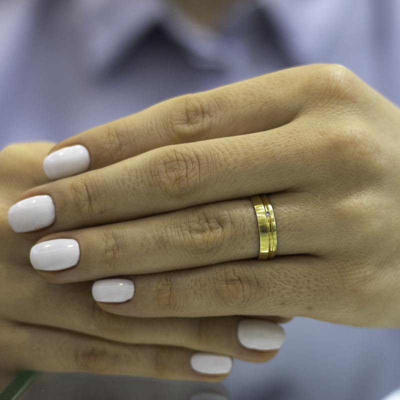 Különleges minőségű karikagyűrűk, domború komfort belsővel. A női modellt 1 kő díszíti, amit kérhettek cirkónia vagy gyémánt opcióval illetve kő nélkül is. A kő árát a gyűrű kalkulált anyagárához hozzá kell számolni. A gyűrűkből női és férfi mintadarab található meg üzletünkben, amit megnézhettek, megpróbálhattok. A gyártási idő átlagosan 3-4 hét.