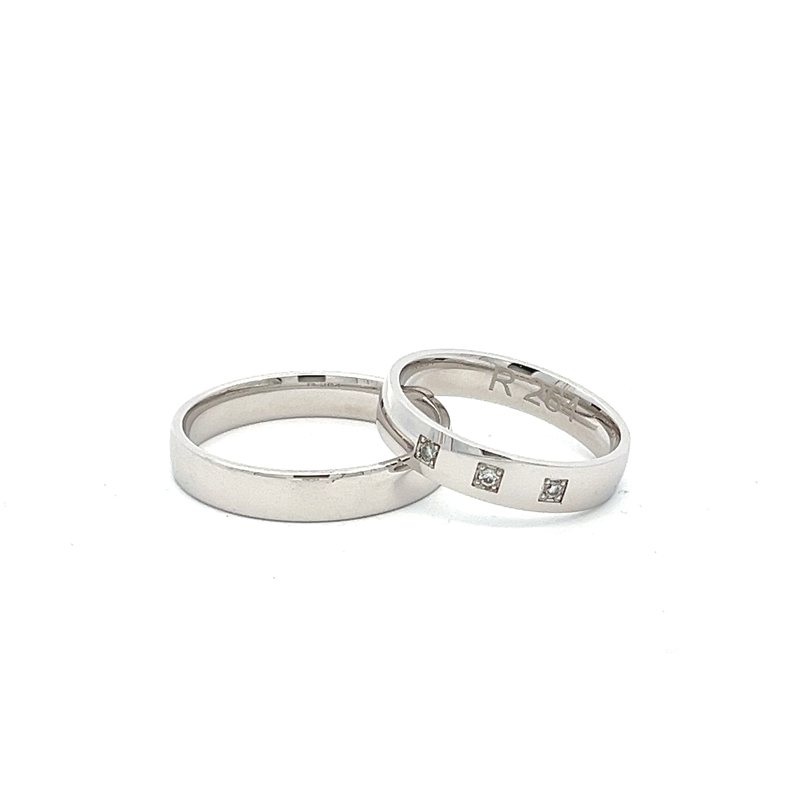 Különleges minőségű karikagyűrűk, domború komfort belsővel. A női modellt 3 kő díszíti, amit kérhettek cirkónia vagy gyémánt opcióval illetve kő nélkül is. A kövek árát a gyűrű kalkulált anyagárához hozzá kell számolni. A gyűrűkből női és férfi mintadarab található meg üzletünkben, amit megnézhettek, megpróbálhattok. A gyártási idő átlagosan 3-4 hét.