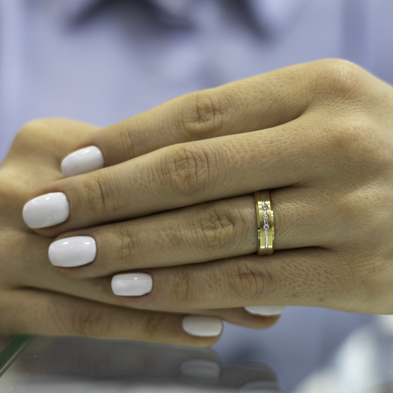 Különleges minőségű karikagyűrűk, domború komfort belsővel. A női modellt 3 kő díszíti, amit kérhettek cirkónia vagy gyémánt opcióval illetve kő nélkül is. A kövek árát a gyűrű kalkulált anyagárához hozzá kell számolni. A gyűrűkből női és férfi mintadarab található meg üzletünkben, amit megnézhettek, megpróbálhattok. A gyártási idő átlagosan 3-4 hét.