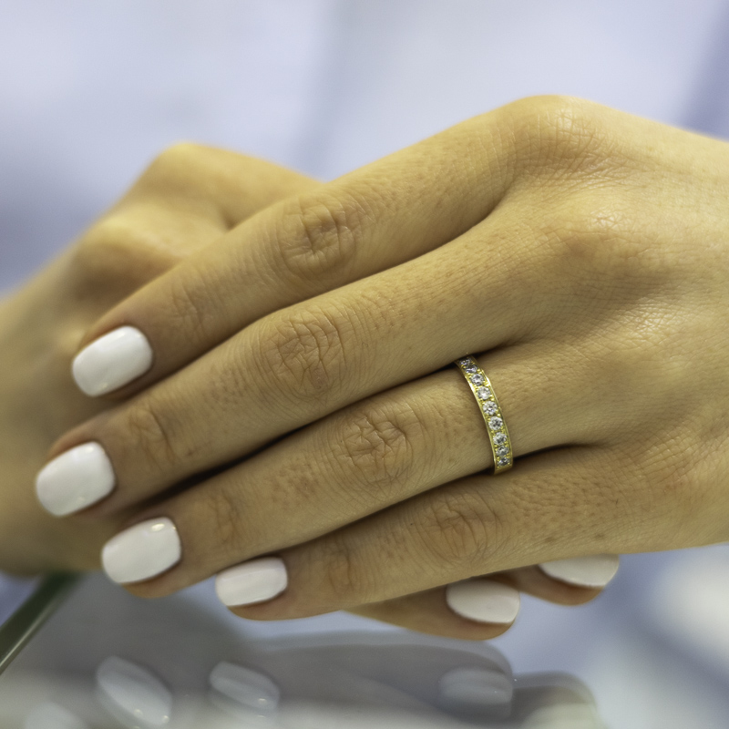 Különleges minőségű karikagyűrűk, domború komfort belsővel, és gyönyörű félig köves női designnal. A fazonok alapból félig kövesek, de szabadon tudjátok változtatni a kövek számát, illetve a fajtáját (cirkónia / gyémánt). A kövek árát a gyűrű kalkulált anyagárához hozzá kell számolni. A gyűrűkből mintadarab található meg üzletünkben, amit megnézhettek, megpróbálhattok. A gyártási idő átlagosan 3-4 hét.