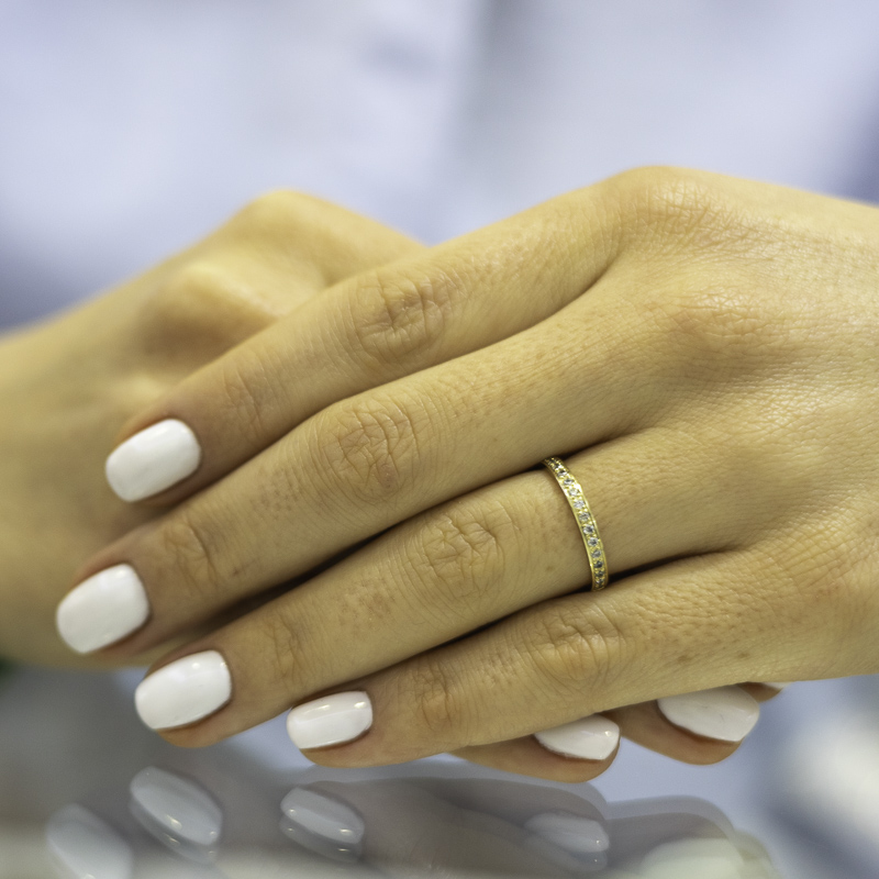 Különleges minőségű karikagyűrűk, domború komfort belsővel, és gyönyörű félig köves női designnal. A fazonok alapból félig kövesek, de szabadon tudjátok változtatni a kövek számát, illetve a fajtáját (cirkónia / gyémánt). A kövek árát a gyűrű kalkulált anyagárához hozzá kell számolni. A gyűrűkből mintadarab található meg üzletünkben, amit megnézhettek, megpróbálhattok. A gyártási idő átlagosan 3-4 hét.