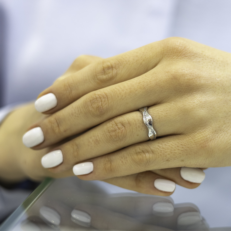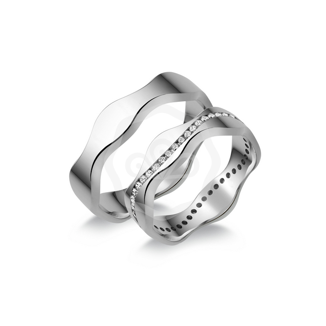 Különleges minőségű karikagyűrűk, domború komfort belsővel. A női modellt 47 kő díszíti, amit kérhettek cirkónia vagy gyémánt opcióval illetve kő nélkül is. A kövek árát a gyűrű kalkulált anyagárához hozzá kell számolni. A gyűrűkből női és férfi mintadarab található meg üzletünkben, amit megnézhettek, megpróbálhattok. A gyártási idő átlagosan 3-4 hét.