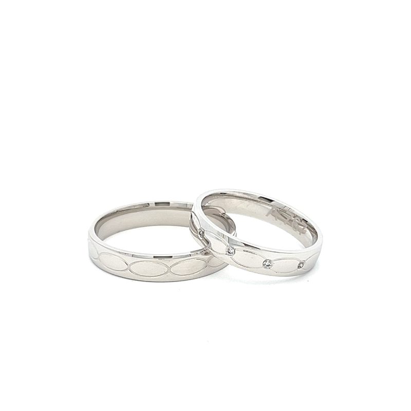 Különleges minőségű karikagyűrűk, domború komfort belsővel. A női modellt 5 kő díszíti, amit kérhettek cirkónia vagy gyémánt opcióval illetve kő nélkül is. A kövek árát a gyűrű kalkulált anyagárához hozzá kell számolni. A gyűrűkből női és férfi mintadarab található meg üzletünkben, amit megnézhettek, megpróbálhattok. A gyártási idő átlagosan 3-4 hét.