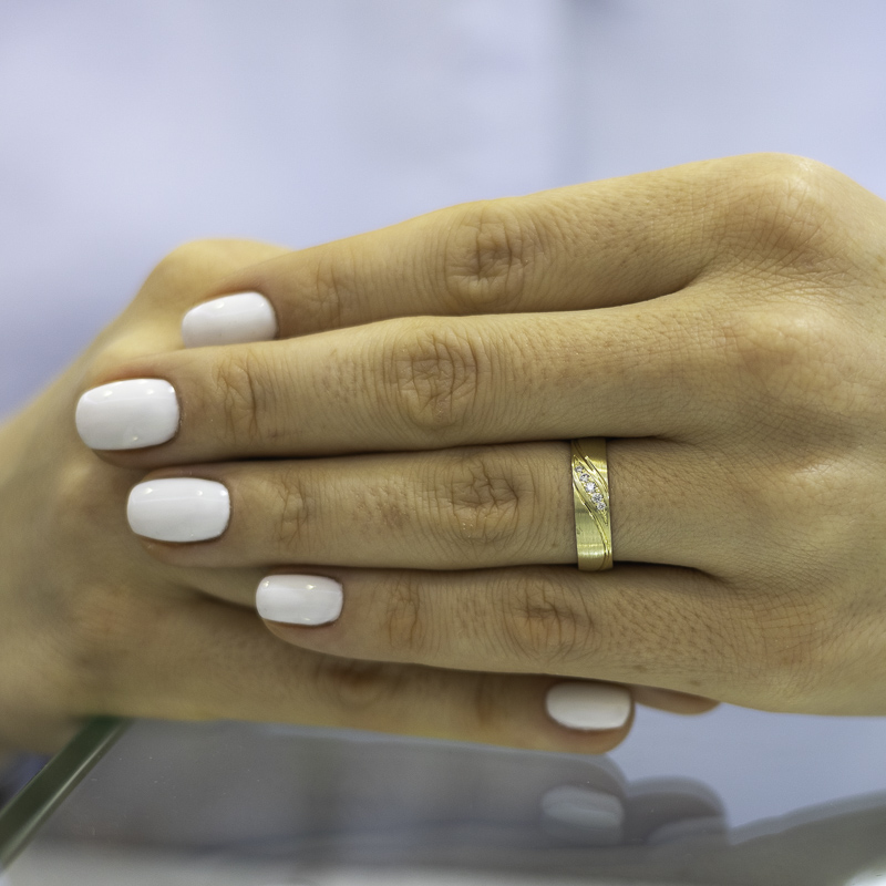 Különleges minőségű karikagyűrűk, domború komfort belsővel. A női modellt 5 kő díszíti, amit kérhettek cirkónia vagy gyémánt opcióval illetve kő nélkül is. A kövek árát a gyűrű kalkulált anyagárához hozzá kell számolni. A gyűrűkből női és férfi mintadarab található meg üzletünkben, amit megnézhettek, megpróbálhattok. A gyártási idő átlagosan 3-4 hét.