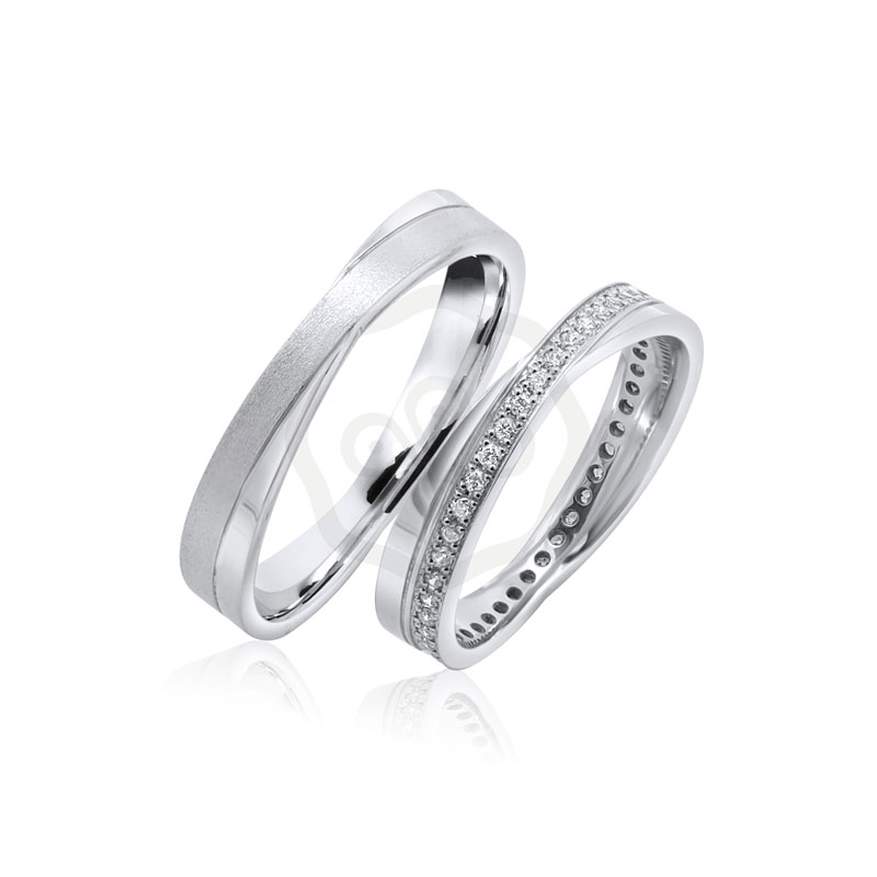 Különleges minőségű karikagyűrűk, domború komfort belsővel. A női modellt 44 kő díszíti, amit kérhettek cirkónia vagy gyémánt opcióval illetve kő nélkül is. A kövek árát a gyűrű kalkulált anyagárához hozzá kell számolni. A gyűrűkből női és férfi mintadarab található meg üzletünkben, amit megnézhettek, megpróbálhattok. A gyártási idő átlagosan 3-4 hét.